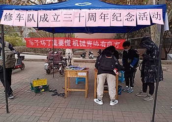 為慶祝機械工程學院青年志愿者協會義務修車服務隊成立三十周年,方便廣大師生出行,機械工程學院青年志愿者協會義務修車服務隊于12月1日下午在第八食堂東側開展紀念修車隊成立三十周年志愿服務活動。